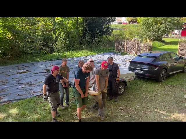 Das Projekt war nicht ohne Herausforderungen: Der halbrunde Verlauf der Stützmauer erforderte besondere Präzision und Geschicklichkeit. Hinzu kam die Arbeit mit bruchrauhem Granit, wobei die größten Steine ein Gewicht von bis zu 60 kg erreichten. Besonders beeindruckend war der manuelle Transport eines etwa 250 kg schweren Steins, der die Teamarbeit aller Beteiligten eindrucksvoll unter Beweis stellte.