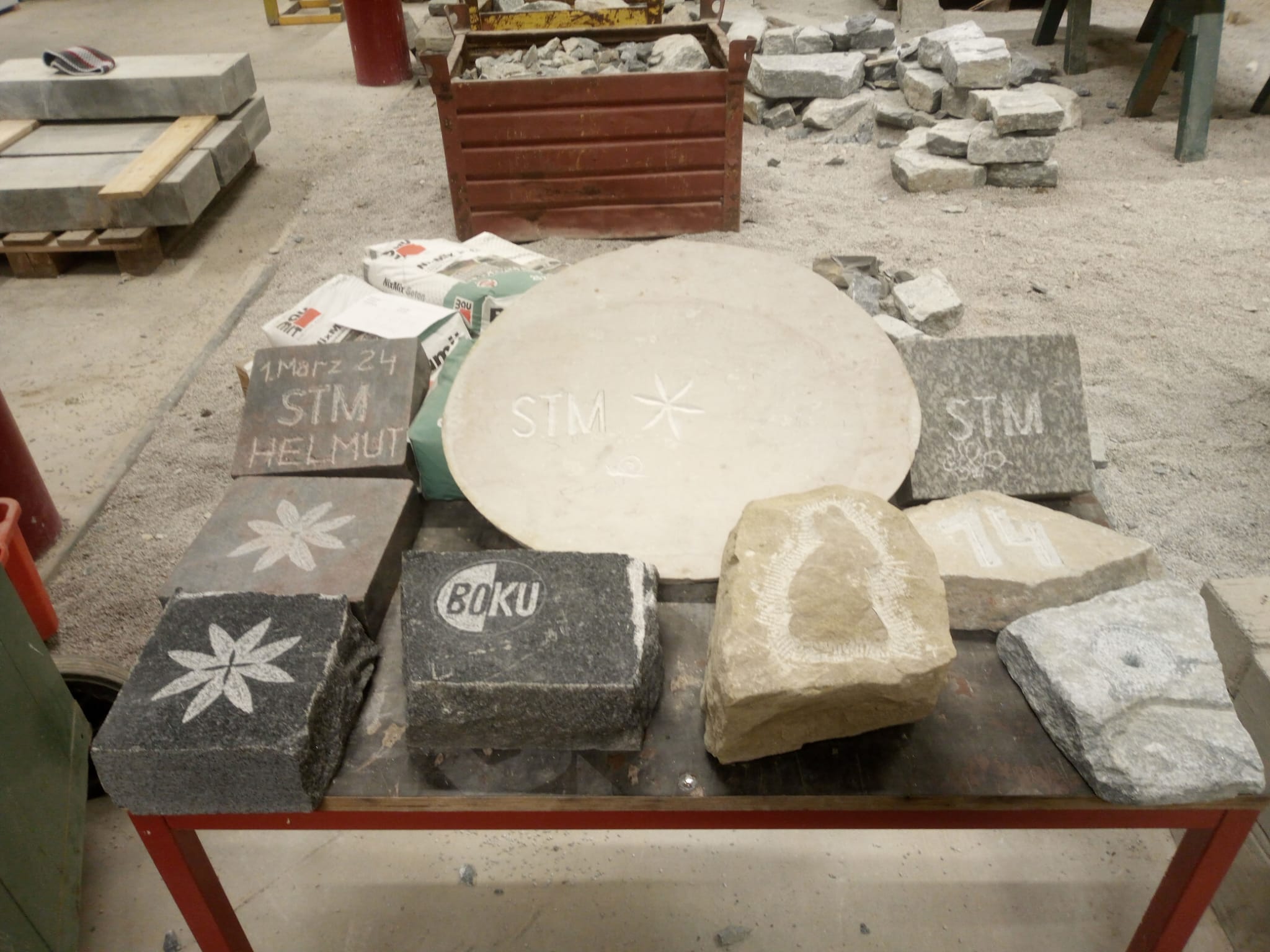 Zwischendurch habe ich den interessierten Teilnehmer historische Handwerkzeuge der Steinmetze aus vergangener Zeit vorgeführt. Zur Abrundung des Nachmittags habe ich einige Fachbücher des Steinmetzhandwerks zur Ansicht mitgehabt. Natürlich konnten sich die Kursteilnehmer:innen ihre Werkstücke mitnehmen. So manche waren sehr stolz auf ihre Arbeiten.